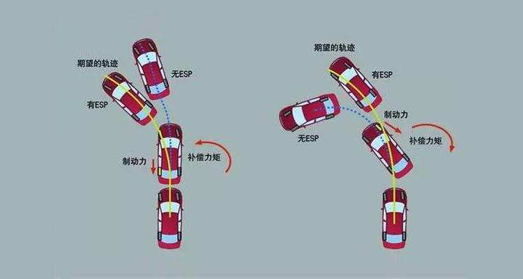 图上这种情况用专业的语言描述,左边属于转向不足,右边属于转向过度,说白了就是汽车操纵不稳,而我们评价汽车操稳性时,常使用摆角速度、侧向加速度、侧倾角及转向力等来评价。而ESP的工作方式如下:
