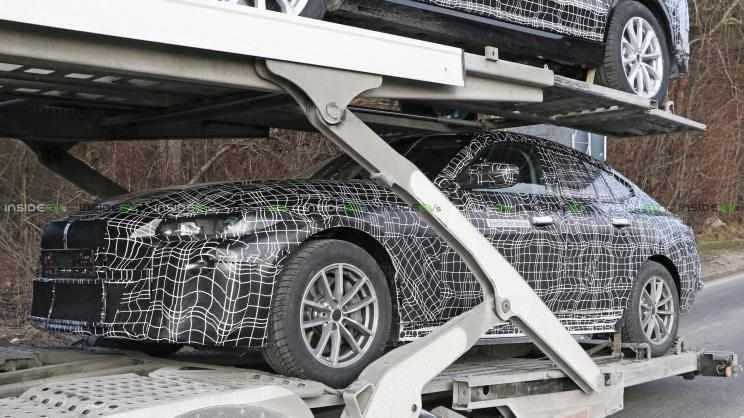 日前,有海外媒体拍摄到了一组宝马电动车型伪装照,并声称这是i4谍照,谍照中的测试原型车被放置在拖车上,且采用了较为严密的伪装,整体轮廓以及车头造型都很接近4系 Gran Coupe,考虑到车身上的“电动测试车”标识以及车尾疑似非实体排气装置,我们认为单凭目前的照片无法肯定这就是i4伪装车,也存在是4系Gran Coupe插电混动版本的可能性。