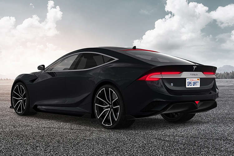 从照片中能看到,新车同现款特斯拉Model S大小接近,采用了四门的设计,但整体造型更加运动,看上去性能范儿十足。尾部有一个“S”的标识,或许这是Model S的换代车型?新车使用了夸张的镀铬装饰将左右两侧的倒C型尾灯连为一体,并且还有类似F1赛车的三角形刹车灯,以及一个夸张的扰流器。