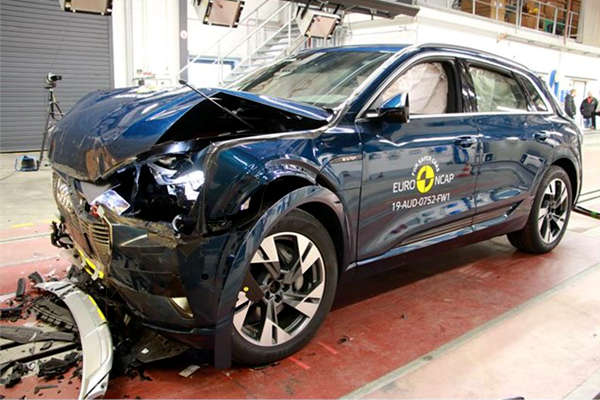 “奥迪 e-tron 的乘员舱在正面偏移测试中保持稳定,碰撞数据显示对驾驶员和乘客的膝盖和股骨的良好保护。在侧面障碍测试中,车辆对乘员的保护性很好,汽车得分最高;在更严苛的侧极测试中,假人肋骨压缩的读数表明车辆对乘员胸部的保护较弱,对身体其他关键区域保护良好;前排座椅和头枕的测试表明,在发生追尾事故时座椅可以很好地防止颈部受伤;车辆的自动紧急制动(AEB)系统在低速下的功能测试中表现良好,在所有情况下都避免或减轻了碰撞。”