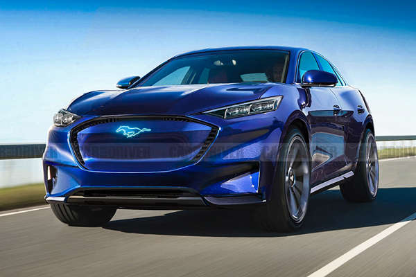 在外媒绘制的这幅渲染图中,新车整体采用了 SUV 的造型设计,车身线条很有肌肉感。前格栅采用了封闭式,格栅中间是发着光的野马 LOGO。