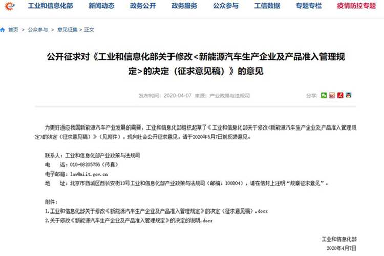 工业和信息化部昨天发布,为激发市场活力,加强事中事后监管,促进我国新能源汽车产业进一步发展,需要对《工业和信息化部关于修改<新能源汽车生产企业及产品准入管理规定>的决定(征求意见稿)》部分条款进行修改,以进一步放宽准入门槛。