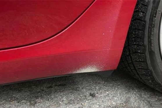 有当地的车友表示,北美版本的Model 3行驶在带有融雪剂的冰雪路面或者砂石路面后,车身底部的漆面会非常快速的脱落。