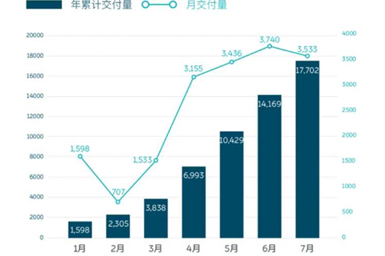 8月3日,邦老师从蔚来汽车官方获悉,就最新销量数据显示,今年7月蔚来汽车共交付新车3533辆,同比增长322.1%,超过去年同期交付量4倍,是仅次于今年6月的历史上第二高单月交付成绩。
