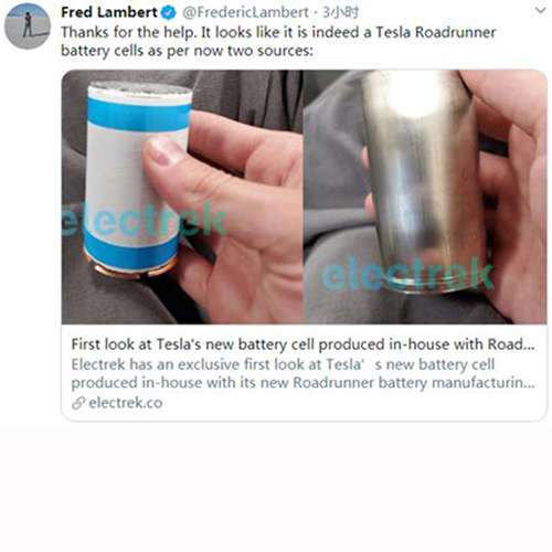 据了解,泄露的图片最初发表在关于Electrek的一份报告中。该媒体称,这张照片是由网友匿名发送,称其为特斯拉的“内部电芯”。同时有消息向Electrek证实,这是特斯拉自研的Roadrunner系列电芯。