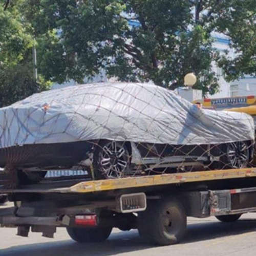 从曝光的谍照可以看到,新车停在一辆拖板车上,车身占据了拖板车的整个“拖板”,可见该车车身较长。另外,可以看到新车采用了溜背式的设计,猜测可能与小鹏P7的风格类似。除此之外,还可以清晰的看到新车的轮毂造型,与蔚来ES6的轮毂高度一致。