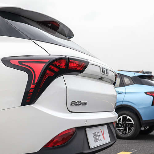 哪吒V的外观设计风格走的是极简风,整车既视感比较素淡,不过在造型独特的头灯、尾灯的点缀之下,辨识度还是很高的。