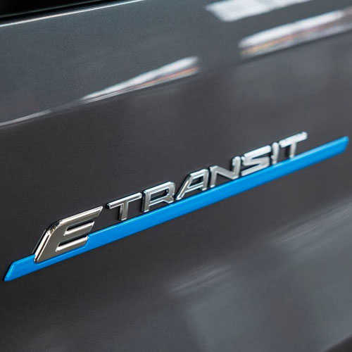 新车的外观整体与燃油款差异不大,仅在前格栅内部增加了蓝色装饰,同时充电口和车身上均有“E-TRANSIT”的专属标志,以凸显该车的新能源身份。
