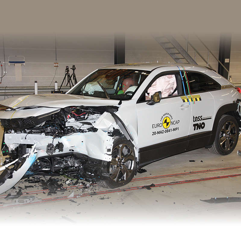 马自达MX- 30在所有四个安全测试类别中的分数分别为:成人乘员安全 91%,儿童乘员安全 87%,弱势道路使用者安全(行人安全)68%和安全辅助 73%。在更具体的测试项目中,MX- 30的侧面碰撞、6岁和10岁儿童成员碰撞保护两个项目的测试分数均为满分。