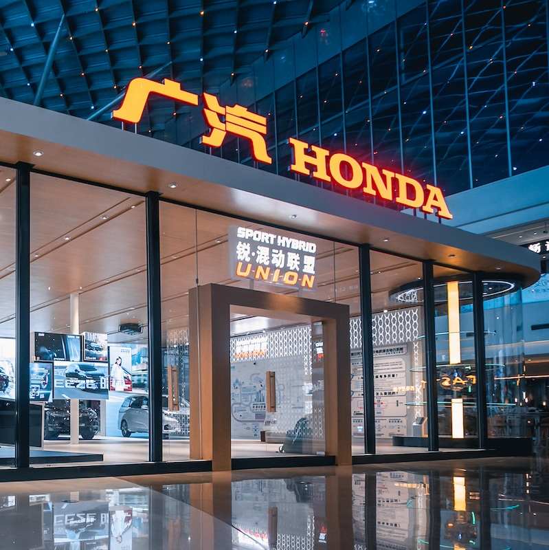 在体验店外观上,基于本田“H”标为设计灵感,并以“SPORTY光影艺术装置”,通过全3D视觉装置呈现广汽本田混动技术领衔车型——第十代雅阁锐·混动轮廓。同时,门店橱窗内还将本田第三代i-MMD混动系统以循环流转的方式进行720°全维度展示,让人更直观地看到它的动力控制技术。