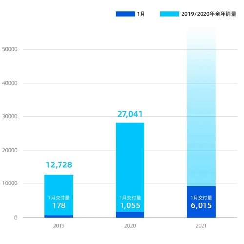 2月1日,小鹏汽车公布了2021年1月交付数据:总交付量6,015台,同比增长470%,连续7个月同比翻番,连续第三个月创历史最好交付成绩。