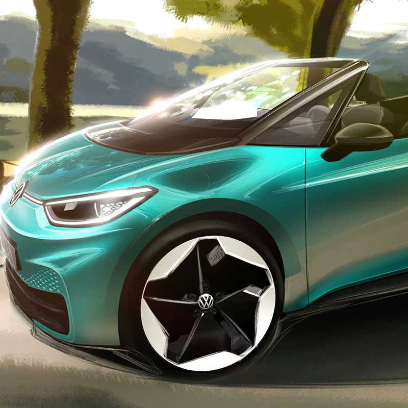 迪斯在英文社交媒体发布了同样的内容,配上了敞篷版大众ID.3的草图。