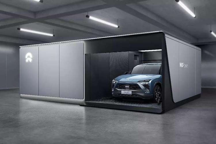 在今年1月的NIO DAY上,蔚来发布了其第二代换电站。相比第一代换电站,新一代换电站电池数量最多可达13块,日服务能力最高可达到312次,换电能力提升超3倍。同时,还支持车辆自动泊入,用户无需下车即可在车内一键启动自助换电。