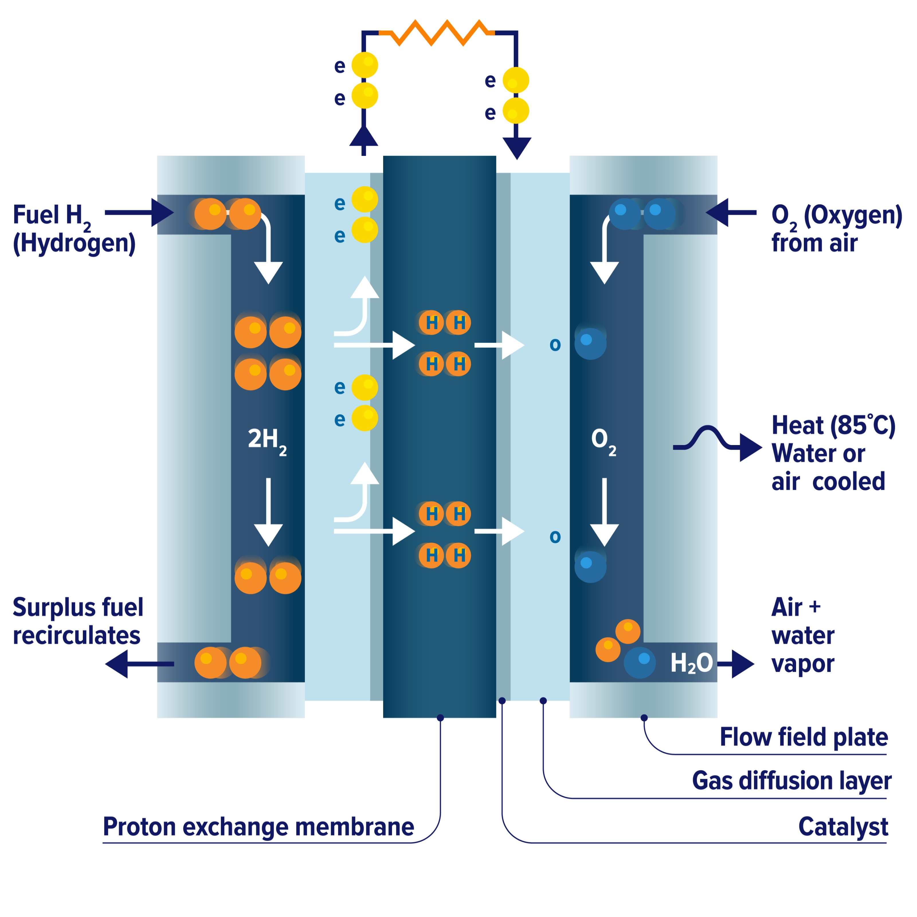 要讨论这个问题,我们首先得搞明白燃料电池是什么,特别是这次迪斯和马斯克一起开喷的氢燃料电池。这个名词相信很多朋友都听过不少次,但要真说明白这是个什么东西,恐怕还真没几个人能做到,所以首先,咱们通过大众集团官方网站自己的一张图片,来了解一下什么是氢燃料电池。