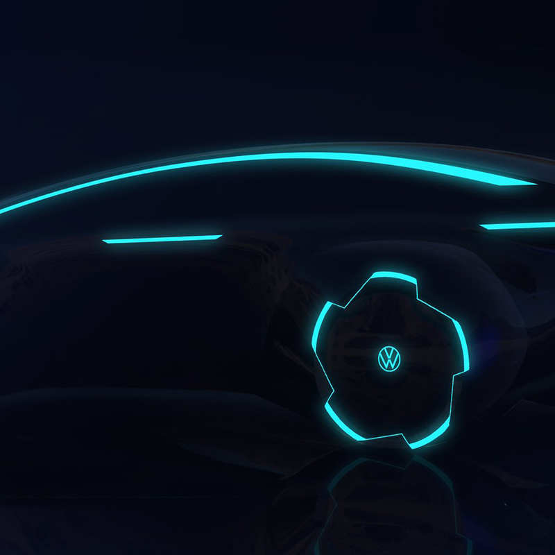 其中第一张配图似乎是大众Trinity项目的最新设计图,外观看起来像是概念车,而车身侧面线条与之前发布的Trinity预览图近似。另外的两张图片中则展示了新车的前脸设计和内饰,所描绘的车内场景正符合迪斯“电动的、数字的、自动的”设想。