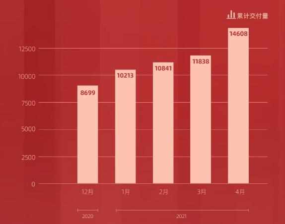 近日,电动邦从官方获悉,零跑汽车官方公布了4月交付量,达到了2770台,同比增长866%,环比增长278%,2021年累计交付已达14608台。此外,官方还公布零跑汽车4月的订单为3614台,环比增长12%,2021年累计订单13633台。