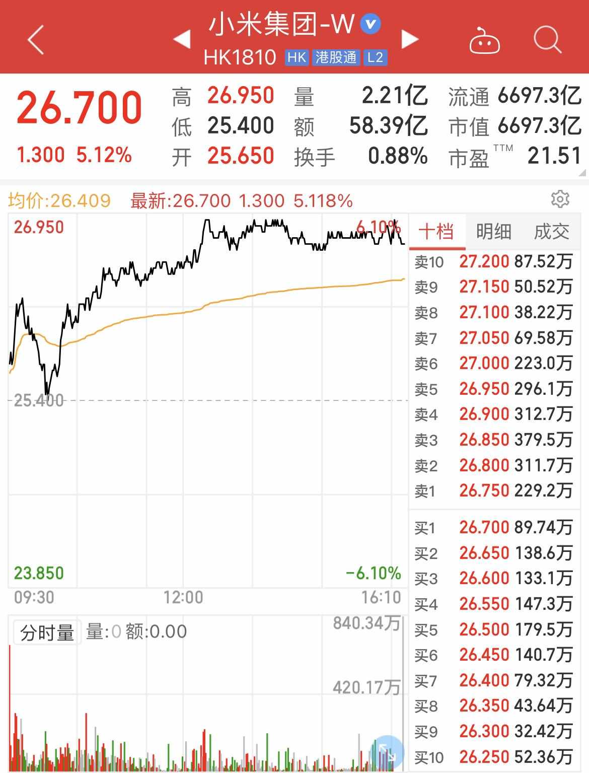 据相关媒体报道,小米收购了自动驾驶公司DeepMotion深动科技,受此消息影响,小米今日股价上涨5.12%。