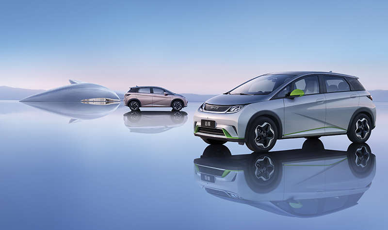 海豚呈现出俯冲的车身姿态,加之以四轮四角的车身设计,整车具有十足动感。