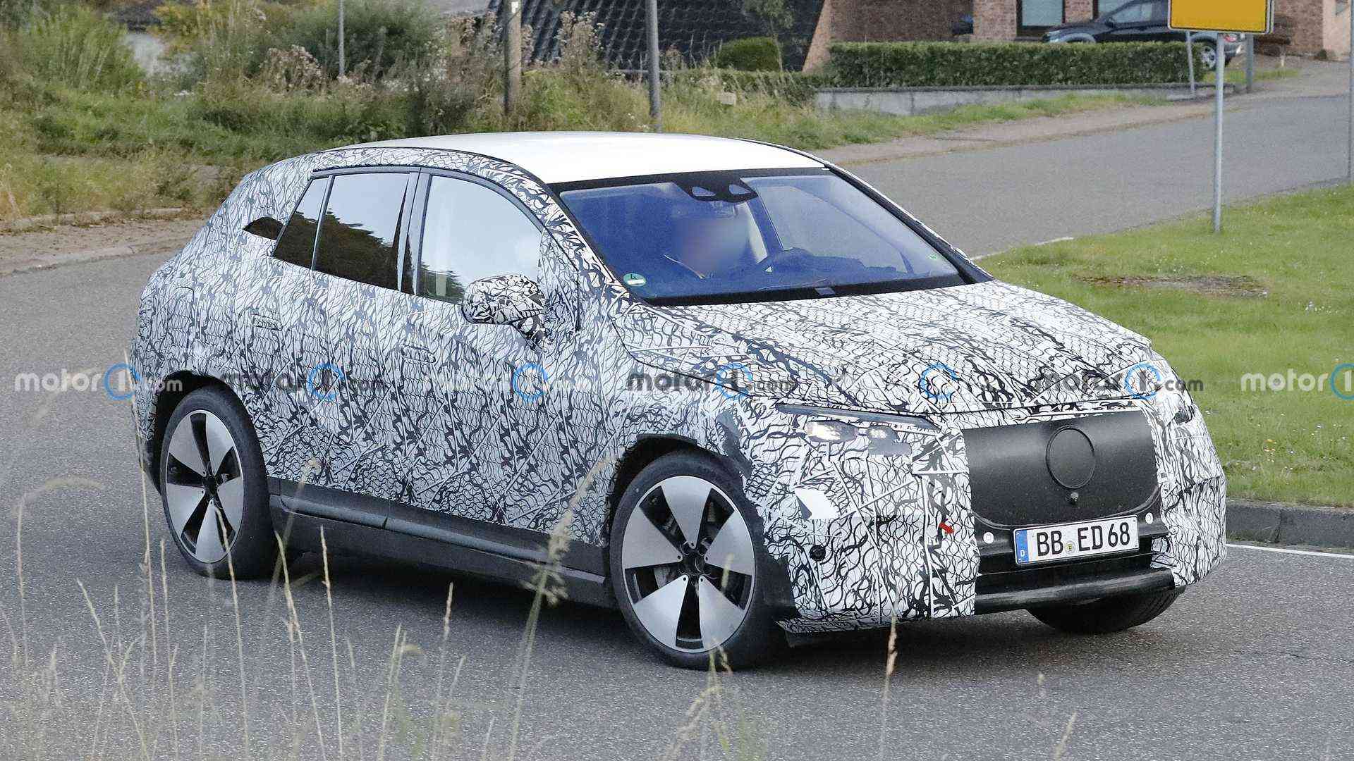 从前面看,测试车采用奔驰“EQ”系列的家族式封闭前脸设计,在伪装下面似乎并没有过多的进气口或者格栅,只有牌照架下方有一个开口不大的通风口。另外在灯组造型上,我们通过测试车能看到条状日间行车灯与圆形矩阵式头灯的分体式设计,让细节并不多的前脸具有了一些层次感。
