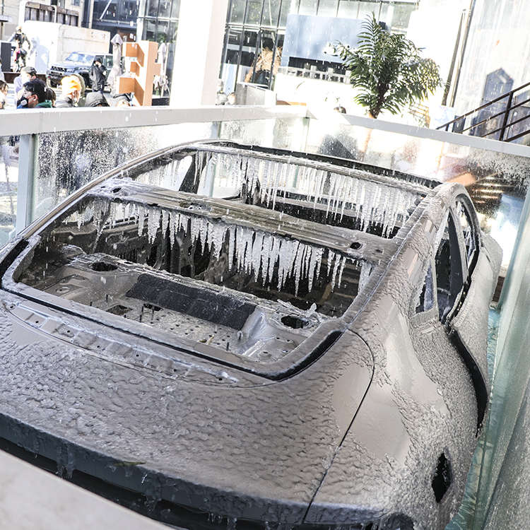 前一段时间,我们收到一条线报,该线报称:在798园区内的751 D•PARK动力广场中,有一辆裸露的纯电动轿跑正在洗海水澡。