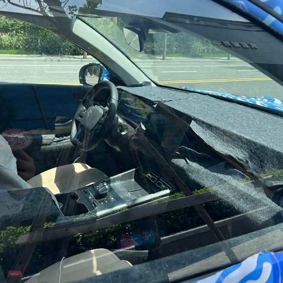 2.方向盘与秦L设计接近,中间写有宋字,液晶仪表镶嵌于中控台上,测试车辆可能属于中低配车型,悬浮式中控屏的尺寸并不算大,预示着新车低配与高配将采用不同尺寸大小的屏幕;