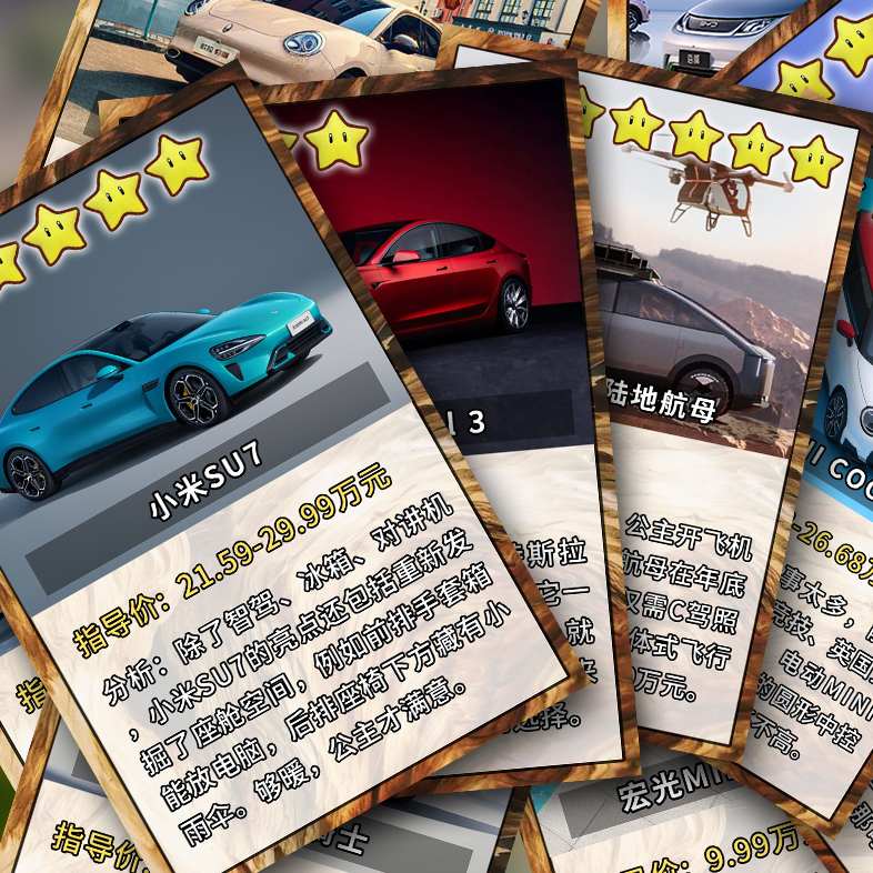 为了增加仪式感,我们把一些值得推荐的高分纯电车型做成了十几张牌子,供公主来翻。