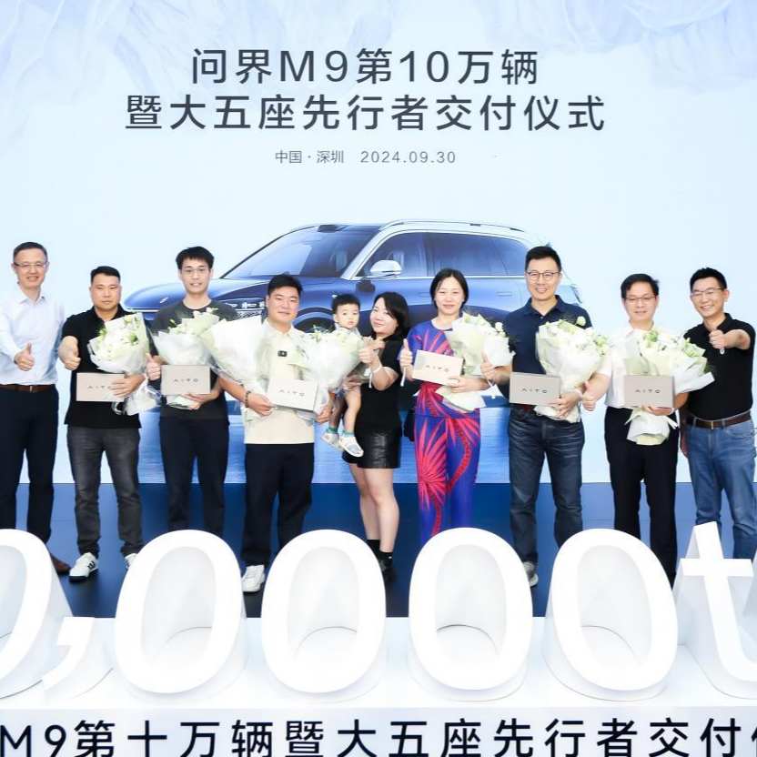 卓越的产品力、高效的交付体系以及完善的售后服务体系,共同构筑了问界M9高品质交付的坚实基石。接下来,问界将进一步提速产能,确保快速交付,助力问界M9加速迈向下一个10万辆的里程碑;同时,问界还将继续深耕高端智能电动汽车领域,通过产品设计和研发创新,加速产品的优化迭代,为更多用户打造出全新的智能豪华出行生活。