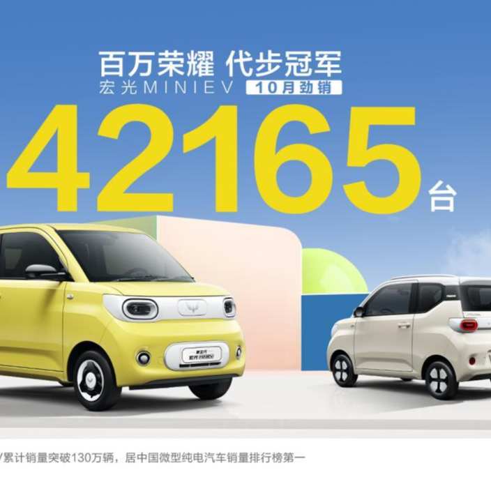 11月5日,金九银十传捷报,宏光MINIEV再登峰!继今年9月完成单月销量28,918台的出色成绩后,“人民的代步车”宏光MINIEV在10月再度发力,持续热销,单月销量冲破4万大关,达42165辆。自2020年7月上市至今,宏光MINIEV已连续51个月问鼎A00新能源销量冠军!