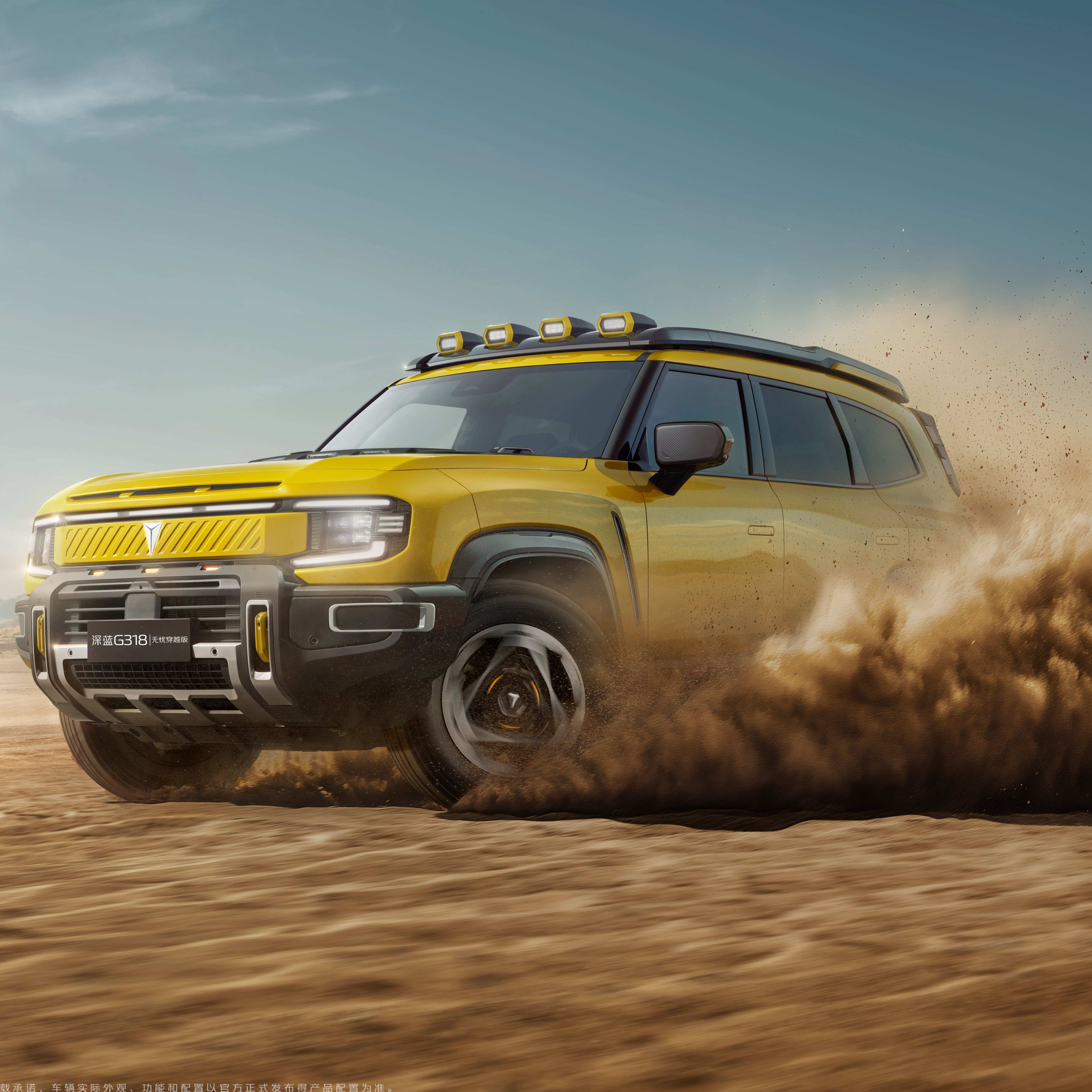 此外,从官图来看,深蓝G318无忧穿越版还配备了许多实用装备,增加车底护板、车顶射灯、越野专用轮胎等诸多专业越野装备,给用户更多户外穿越信心,即便面对泥泞沼泽、陡峭山坡、狭窄沟壑等复杂路况,也能从容应对。