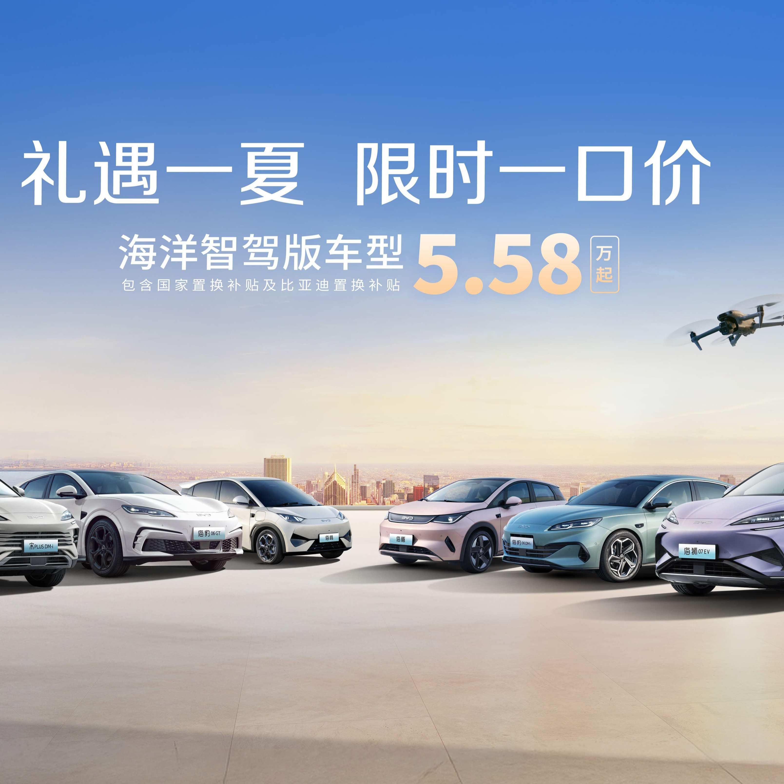 为回馈广大用户的支持与厚爱,比亚迪海洋网推出“礼遇一夏,限时一口价”活动,即日起至6月30日,购买海鸥智驾版、海豚智驾版、宋PLUS智驾版、海豹06DM-i智驾版等10款智驾版车型,即可享受限时一口价的惊爆活动,其中海鸥智驾版限时一口价5.58万,海豚智驾版限时一口价7.78万,宋PLUS DM-i智驾版限时一口价9.98万,宋PLUS EV智驾版限时一口价11.78万,海豹06DM-i智驾版限时一口价7.68万,以实际行动让利消费者,助力更多用户轻松解锁高品质新能源出行生活。