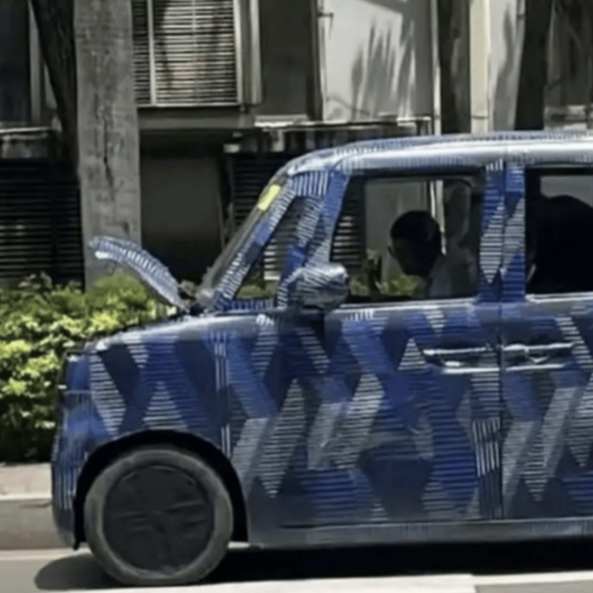 从谍照上看,新车造型方正小巧,封闭式格栅搭配双层日行灯,集成转向灯功能;四门布局+后排侧滑门,滑轨位于后轮眉上方,节省空间且便于狭窄空间操作。尾部竖向尾灯组与后雨刷增强实用性。车窗下沿居中设计,为头部预留宽裕空间。