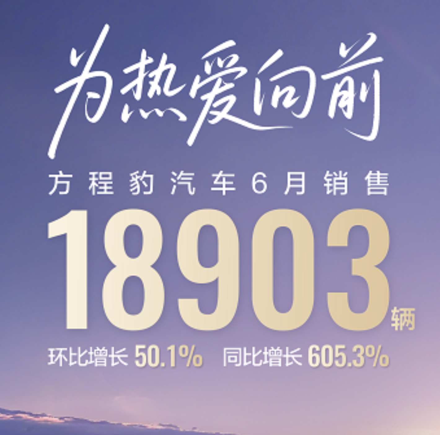 在如今汽车市场的激烈竞争态势之下,比亚迪旗下个性化品牌方程豹汽车,6月销量呈现强劲增长态势,全月销量18903,再创历史销量新高,实现品牌势能的快速提升,成为了成长速度最快、发展态势最好的新势力品牌。