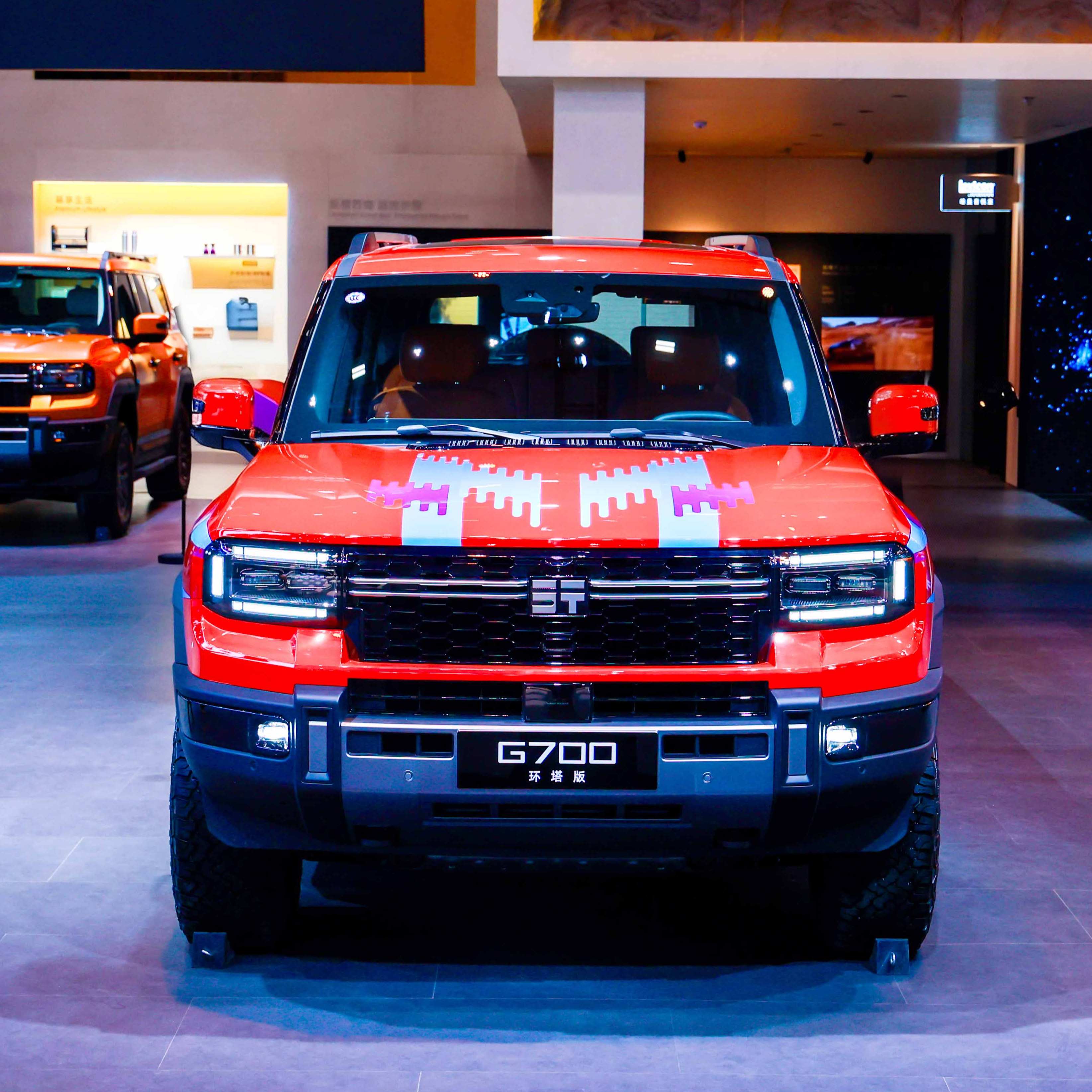 “冠军”之姿。G700环塔版采用冠军美学设计,身披典藏“烈焰”涂装,以高饱和的赛事红为主色调,较普通车漆亮度提升10%;搭配动态空气动力学版画设计,以赛道级色彩工程还原环塔拉力赛激情基因,赋予车身“速度可视化”的震撼效果,每一处细节都在诠释“为征服而生”的硬核态度。