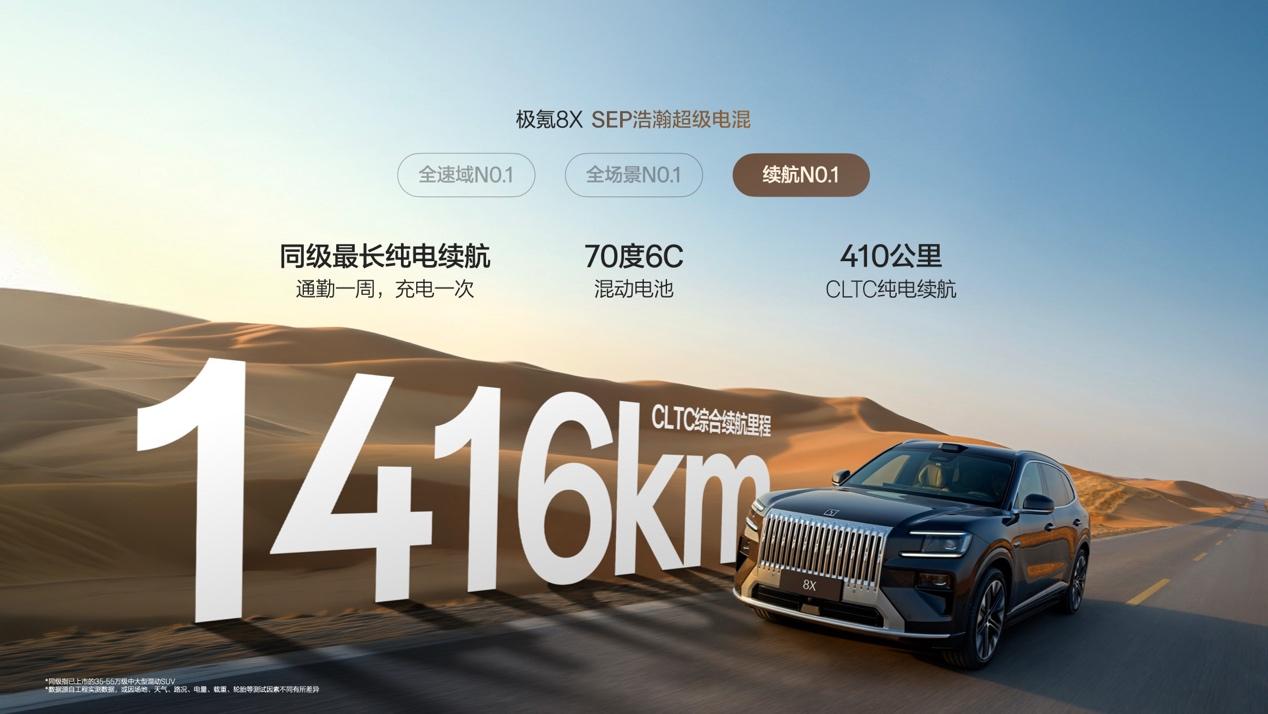 传统豪华品牌竞品依托多年品牌积淀占据市场份额,在机械素质、品牌调性上有自身固有优势。而极氪8X则凭借电混架构的技术特点,在动力响应、续航灵活性、智能配置、空间利用率上形成差异化优势,3.7秒的零百加速(曜影版本2.96秒)、410km纯电续航、9分钟快充等表现,贴合当下消费者对新能源车型的核心需求。