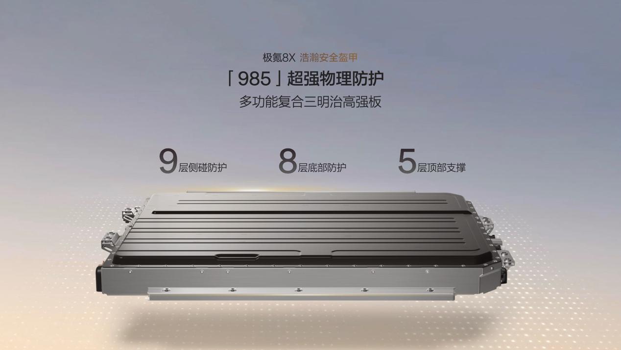 电池组配备9层侧碰防护、8层底部防护、5层顶部支撑的多层防护结构,最大限度降低碰撞对电池的损伤,保障车内乘员与电池组安全。