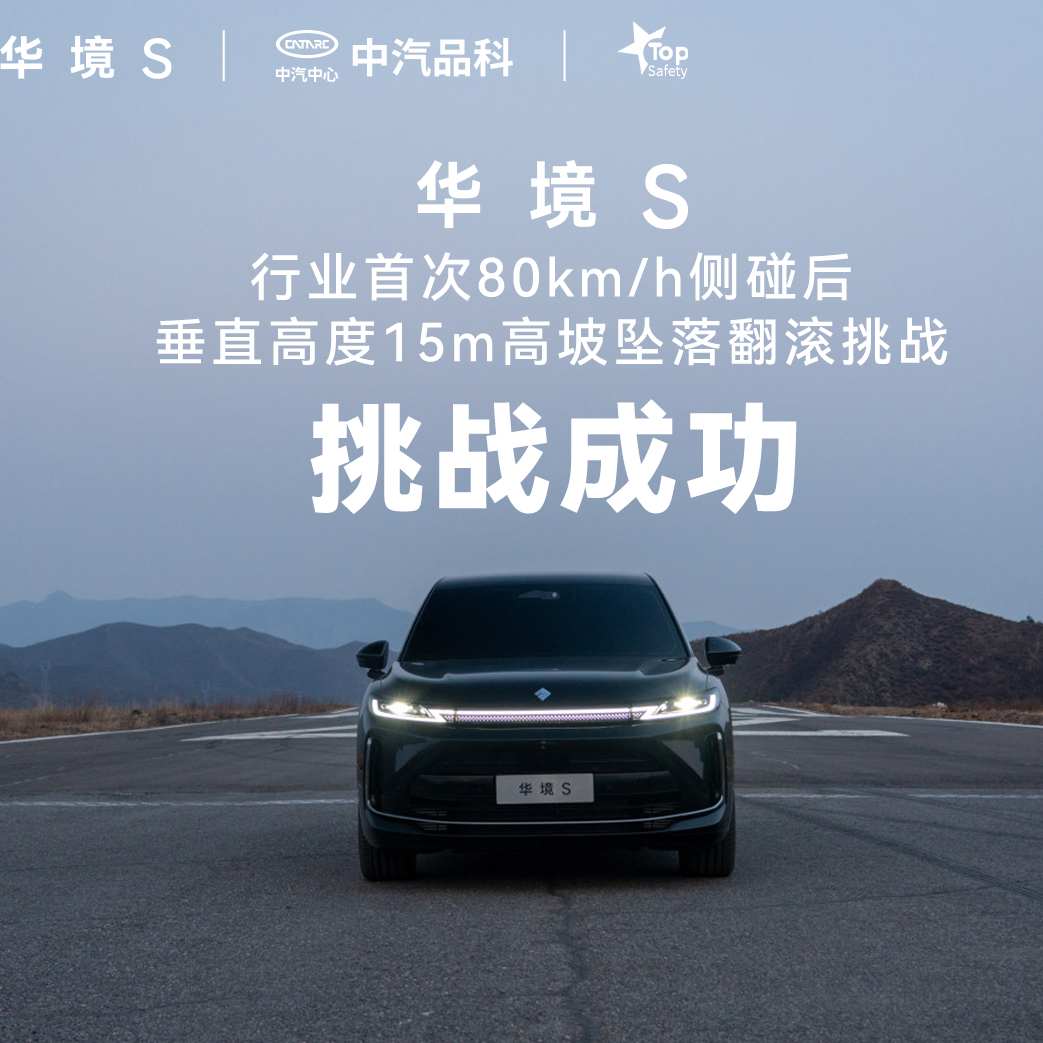 在真实交通事故中,单一碰撞已足够致命,而华境S此次挑战的,是“高速被撞后坠坡”的连环事故叠加——先承受80km/h的侧面撞击,再经历从15米高坡翻滚多圈落地。