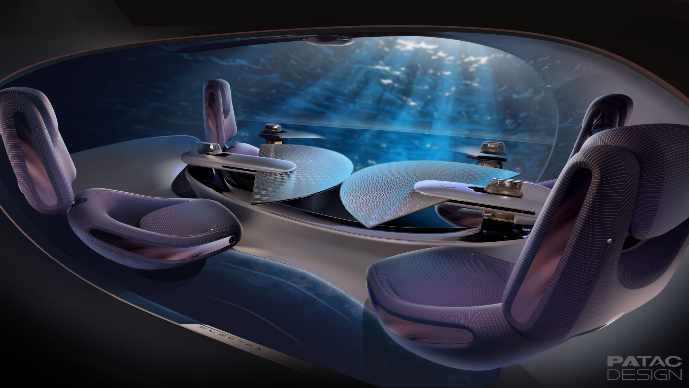 “至境移动空间智慧体”内饰以中国传统扇面与屏风为灵感,演绎东方空间哲学
