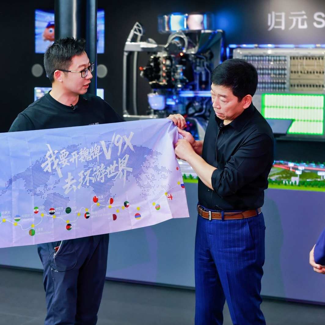 在归元S区,长城汽车展示了其全新开发的“归元平台”。据现场介绍,该平台为全球首个原生AI全动力汽车平台,兼容PHEV、HEV、BEV、FCEV、ICE五大动力形式,可实现“一车多动力、一车多姿态、一车多品类、一车卖全球”。魏建军在直播中表示,归元平台代表了长城“回归造车第一性原理”的理念,强调“不玩技术噱头,不算用户长期账”。现场邀请了一位名为阿呆的环球车主。据介绍,阿呆在十年内购买五台长城汽车,累计行驶30万公里,未发生故障,并在直播现场下定了一台魏牌V9X。