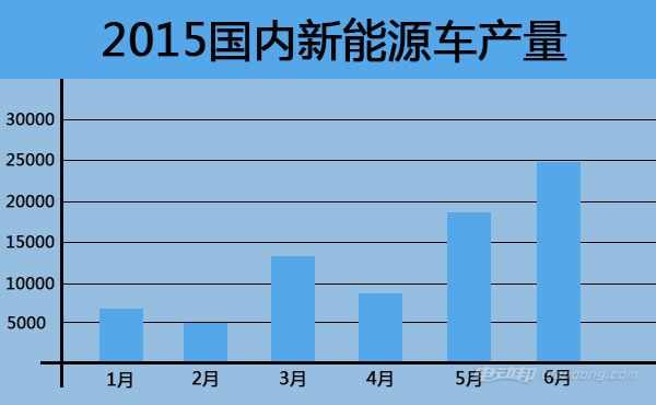 近日,工信部公布了我国新能源车6月份的产量数据。根据机动车整车出厂合格证统计,2015年6月,我国新能源汽车生产2.50万辆,同比增长3倍。其中,纯电动乘用车生产1.05万辆,同比增长2倍,插电式混合动力乘用车生产6663辆,同比增长7倍;纯电动商用车生产6218辆,同比增长5倍,插电式混合动力商用车生产1645辆,同比增长148%。列入《免征车辆购置税的新能源汽车车型目录》前四批的新能源汽车生产2.35万辆,占6月产量的94%。