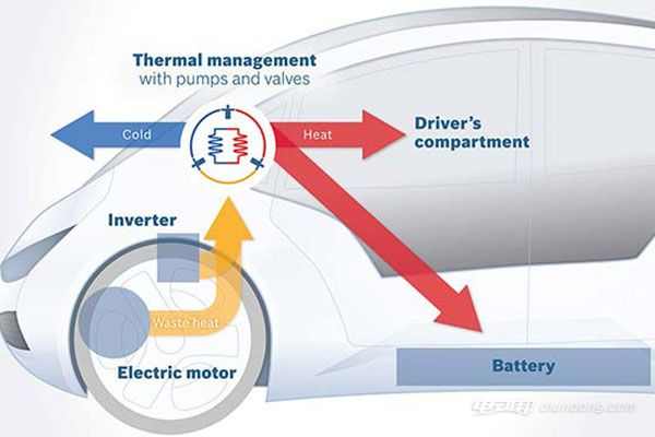 博世热能管理系统的特点是能够控制泵和阀门精确地收集热量和冷源,并准确地将它们运输到所需的地方。此外,创新使用电动机和动力电子元件的余热和通过控制空气流通从空气中吸取水分的方法,也减少了加热和冷却的需要。