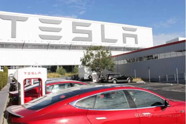 刚一走进特斯拉工厂,就能看到一排在超级充电站充满电的Model S电动轿车。