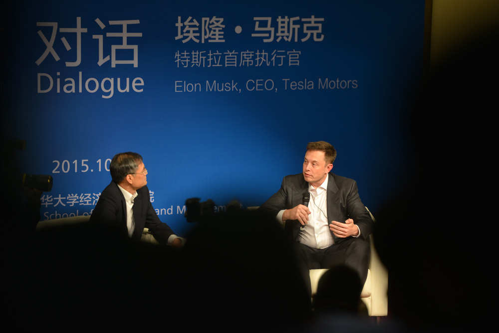 10月22日晚上7点整,特斯拉CEO Elon Musk与清华管理学院院长钱颖一同走进伟伦楼一层报告厅。作为清华经管学院一年一度全球论坛的重要组成部分,邀请一位当红大咖进行对话是清华经管每年的惯例,去年坐在钱颖一面前的,是苹果CEO蒂姆.库克。