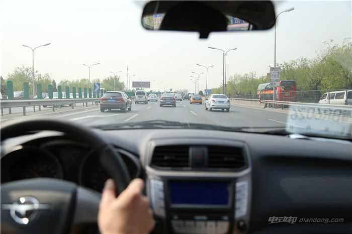 经过大约30分钟的拥堵路况,我们驾驶海马@3来到北京的亦庄经济开发区。经过上坡、四环主辅路、一小段拥堵高速路段,我们驾驶海马@3进入到这一地段进行长时间测试驾驶。驾驶时速基本保持在60公里每小时的速度,没有急刹车、加速。