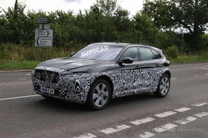 从曝光的图片来看,这款新车整体轮廓造型与捷豹F-PACE车型十分相似,前舱盖上的线条粗壮力量,前大灯组也沿用了F-PACE的设计,而捷豹家族式的大嘴前格栅设计也得以保留。不过在轴距方面,新车明显要比F-PACE短上不少。由于新车缩短了轴距,因此车尾的设计与F-PACE有所不同,尤其是没有伪装的尾翼更加短小精悍。此外,全车进行了高度伪装,图片无法获悉更多细节。