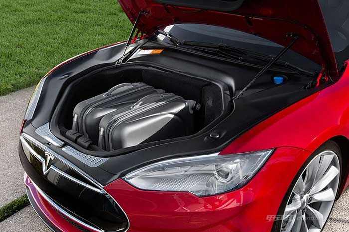 由于精简了燃油车型上必要的机械部件,特斯拉Model S得以将前舱盖下的空间预留出来当做一个前备品箱,千万别小看这个“前备箱”,我们可是在评测该车时轻松将一个身高1米75的同事塞了进去!这样的容积几乎可以媲美一台A0级车型的后备箱了!值得一提的是,这个“前备箱”不仅提升了Model S在储物方面的能力,还能在车辆前部发生碰撞时起到吸收能量的作用,可以说是一个一举两得的设计!