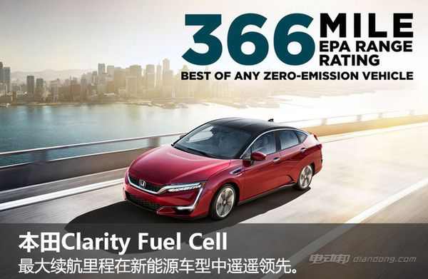 [电动邦 新车消息] 在2015年的东京车展中,本田旗下的燃料电池汽车——Clarity Fuel Cell进行了全球首秀。据悉,本田全新燃料电池汽车将于2016年年末上市。同时,根据美国环保局的认定,本田Clarity Fuel Cell的续航里程最大可达590公里。