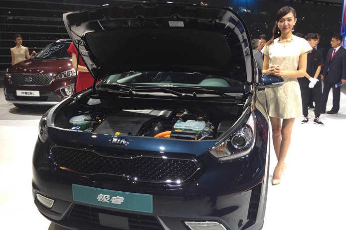 [电动邦 2016广州车展]2016年广州车展将于11月18日开幕,在开展前夕,起亚Niro现身展馆,新车将命名为“极睿”,该车于今年的北京车展在国内亮相,或将于今年年末以进口方式在国内销售。