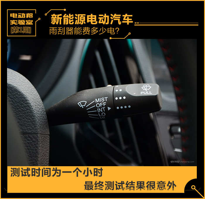 [电动邦实验室] 小编身边的朋友最近总在问一些“无聊”的问题,例如新能源汽车持续开大灯能费多少电?雨刮器持续使用能费多少电?玻璃水哪一款去污效果好?等等,虽然很“无聊”,但恨不得隔三差五就被问一次,所以小编这次打算亲自为他们实验一番,本次先进行雨刮器耗电问题。