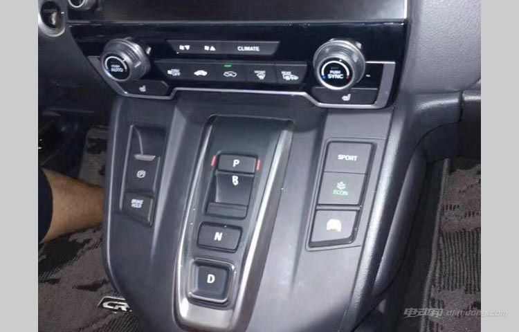 东风本田新一代 CR-V 锐·混动整体的内饰延续了海外版的设计和风格,同样采用了对称式的中控台布局,并配备有与新思域相同的液晶仪表盘和三幅式多功能方向盘,以及融入了旋钮控制键的 7 英寸触控屏和 Garmin 合作开发的导航系统,全新的多媒体系统还支持语音激活 CarPlay 和 Android Auto 多功能。而最大的亮点则是采用了一套与冠道 370 TURBO 车型上相同的按键式的换挡机构。