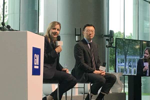 ▲ 通用全球CEO Marry Barra(左)与通用汽车中国公司总裁钱惠康(右)